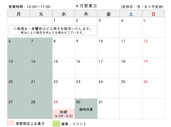 【4月|営業日・販売商品のご案内】